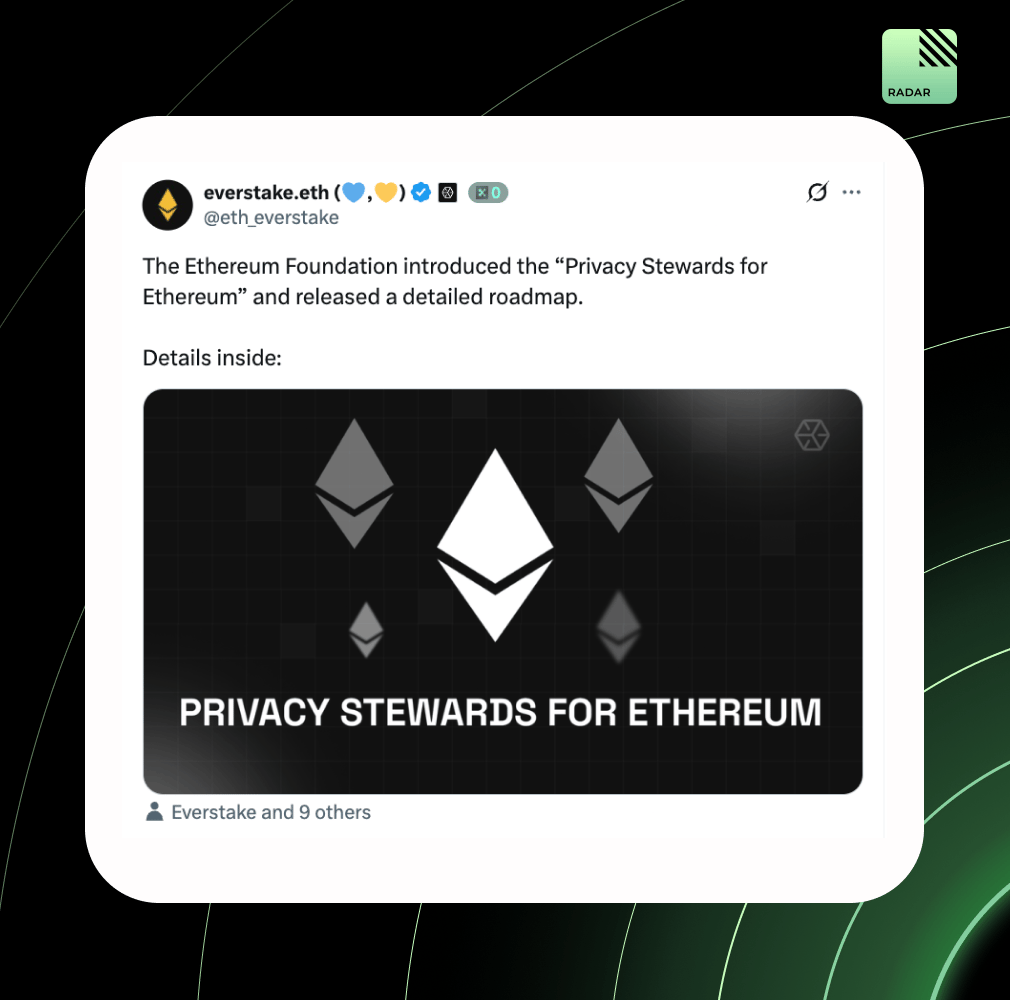 Ethereum’s PSE team is rebranding as Privacy Stewards for Ethereum, shifting from tech exploration to problem-first coordination. Their roadmap centers on private writes, reads, and proving, from zk transfers and private voting to network privacy, zkTLS, and modular identity. Goal: make privacy the default on Ethereum.