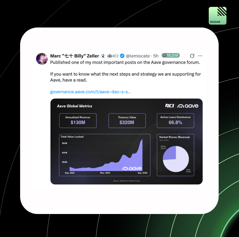 Aave’s “State of the Union” charts its rise from crisis to dominance. With $130M cash flow, buybacks live, and GHO maturing, the DAO plans to double down on growth, kill deadweight forks, and focus on high-margin plays.