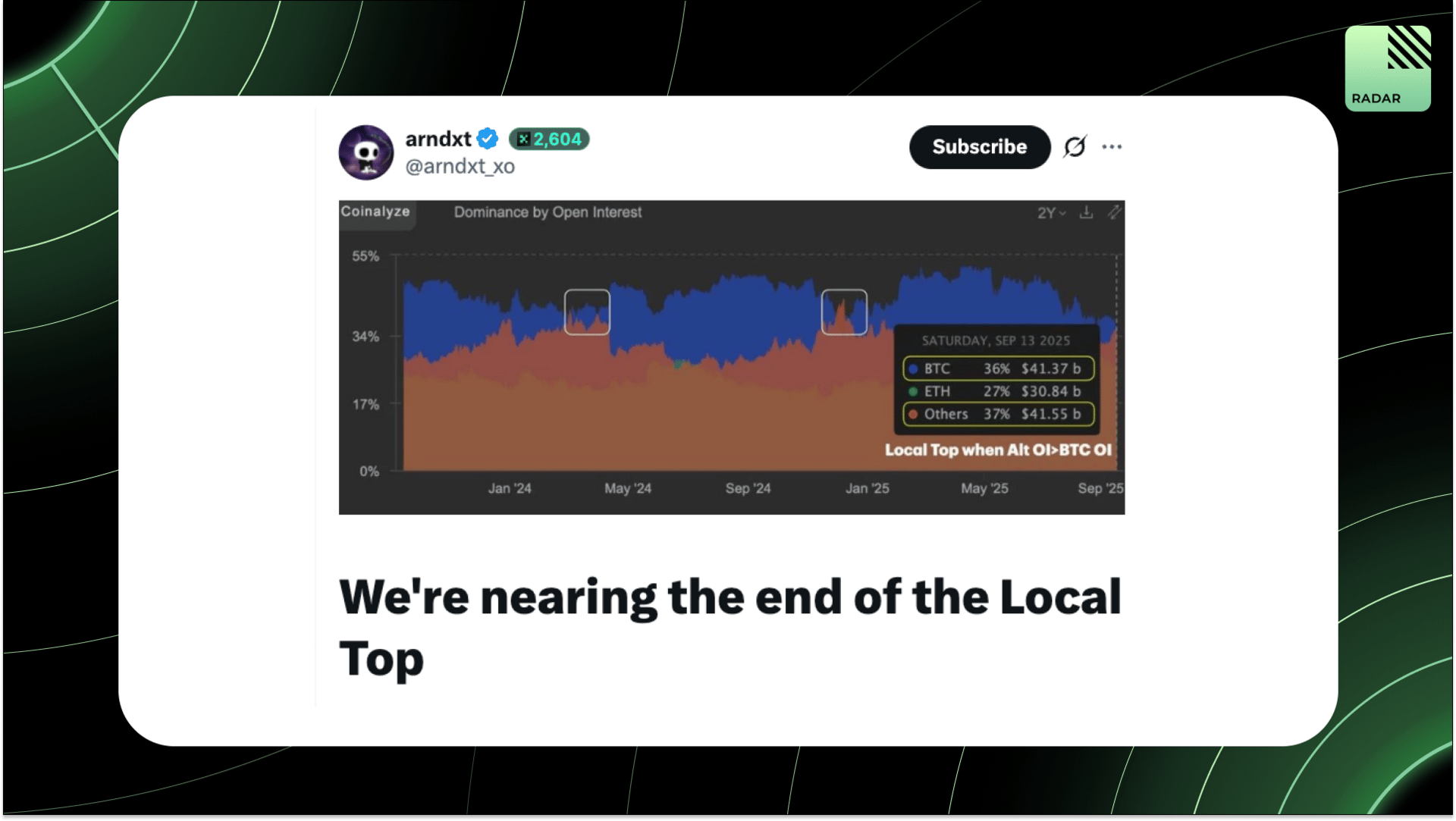 The market looks stretched. Alt OI > BTC OI flags a local top, with reversal risks, and macro being hostile despite asset strength. Unlike 2021’s liquidity-fueled run, 2025 rallies are fiat-debasement-driven. Selectivity, timing, and discipline will matter more than hype.