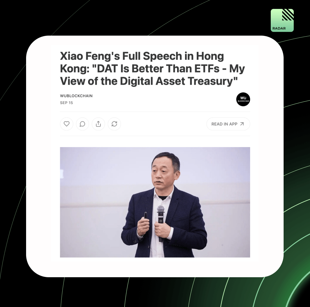 Xiao Feng argues that DATs beat ETFs for crypto exposure. Unlike ETFs tied to NAV, DATs trade on market value, bringing price elasticity, faster liquidity via exchanges, built-in leverage structures, and downside buffers. He predicts that DATs could rival ETFs in scale within a decade.