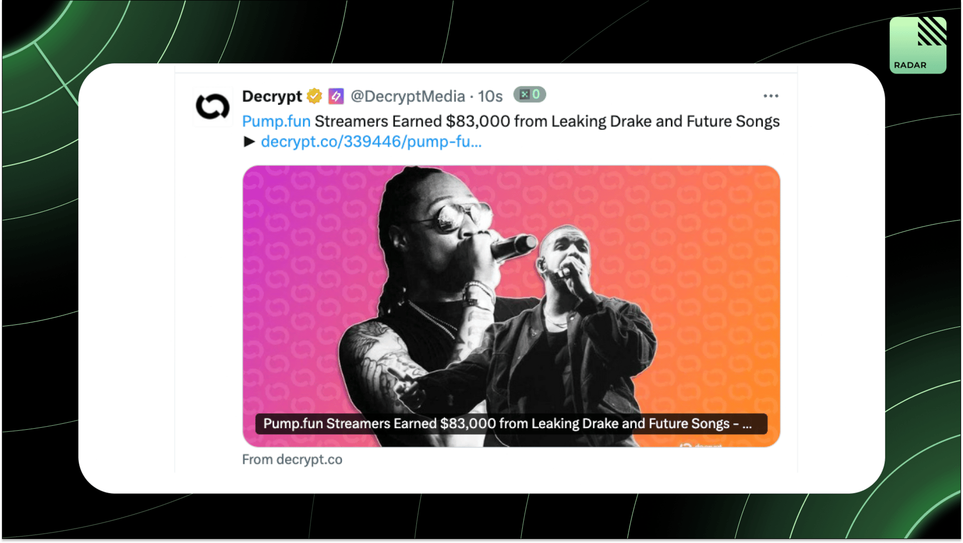Solana streamers Bagwork leaked unreleased Drake and Future tracks on Pump.fun, sending their meme coin to a $53M cap and netting $83K in fees. The duo has made $168K in four days as Pump.fun’s “creator capital markets” boom, with $20M in rewards claimed last week.