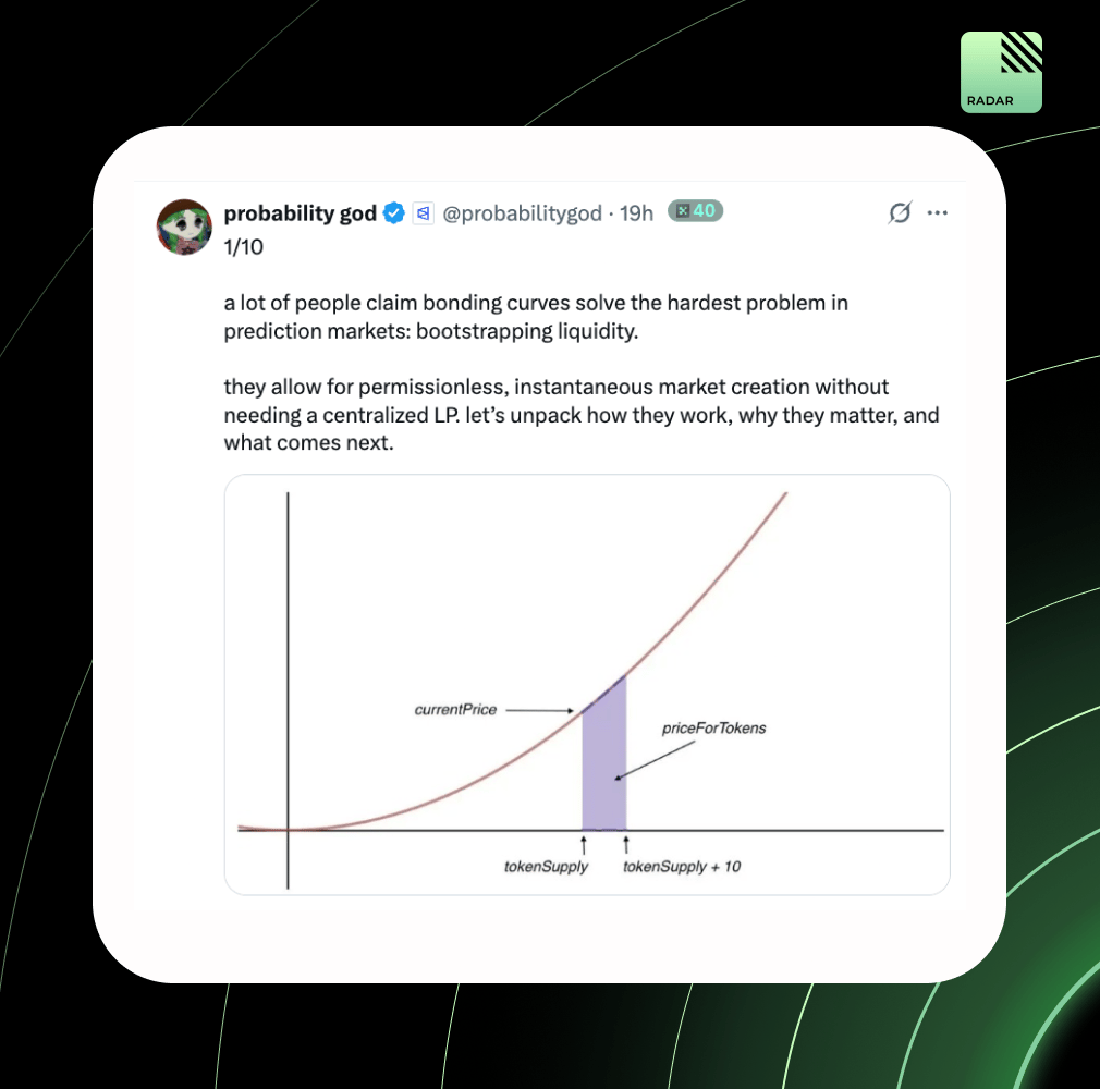 Bonding curves make liquidity programmable: token supply maps to price, contracts guarantee collateral, and markets can spin up instantly. They’ve powered AMMs, NFT mints, and now prediction markets, but risks in design mean PM liquidity still isn’t fully solved.