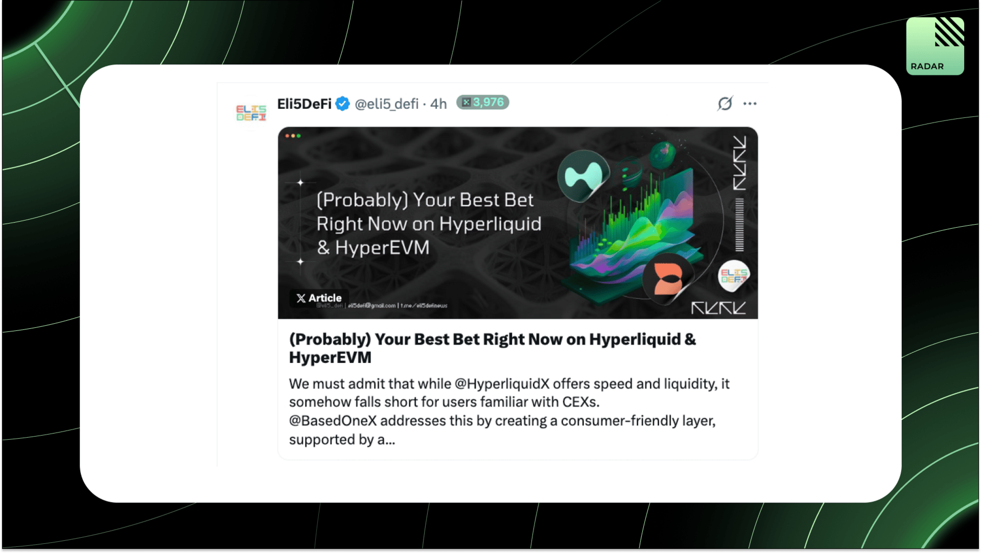 Based is building a consumer layer on Hyperliquid with mobile-first UX, XP rewards, and an in-app store for bots and strategies. Backed by Ethena Labs, it’s hit $9B in trading volume, $43M annualized revenue, and is pushing HyperEVM adoption through Hyperdrop and Launchpool.