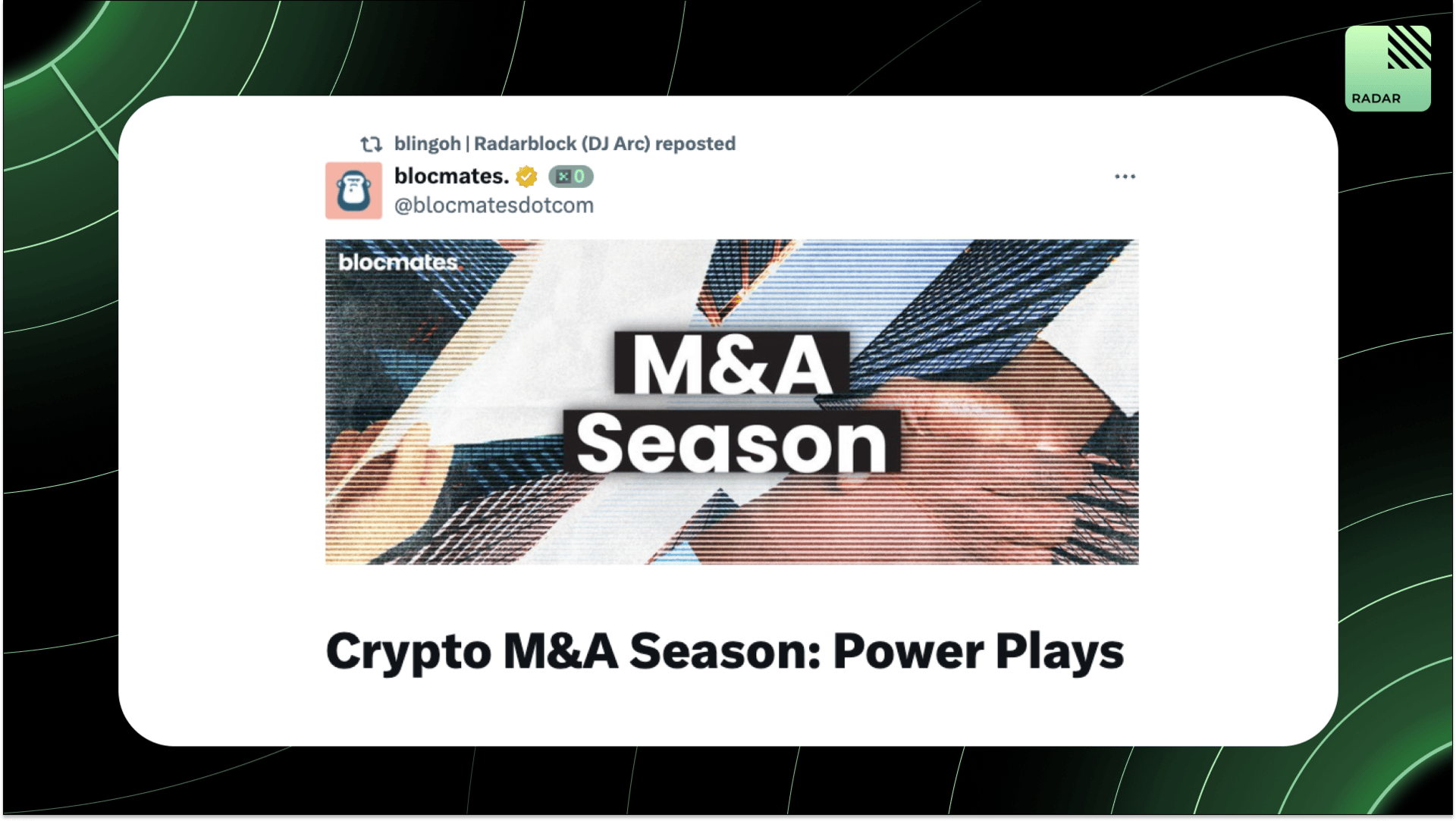Crypto M&A is heating up: LayerZero folded Stargate, Kraken acquired Breakout, Avail bought Arcana, Coinbase took Sensible, and Ripple scooped Rail. Miners, oracles, and asset managers are consolidating too, reshaping the industry while the market watches prices.