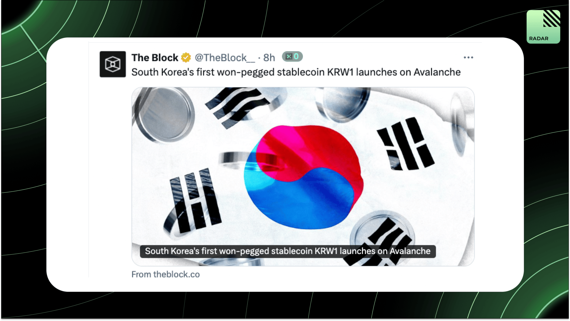 South Korea’s BDACS has launched KRW1, the first won-pegged stablecoin, on the Avalanche blockchain. Backed by reserves at Woori Bank with real-time proof via APIs, KRW1 is still in the PoC stage amid unclear rules. BDACS aims for global use in remittances, payments, and public-sector settlement systems.