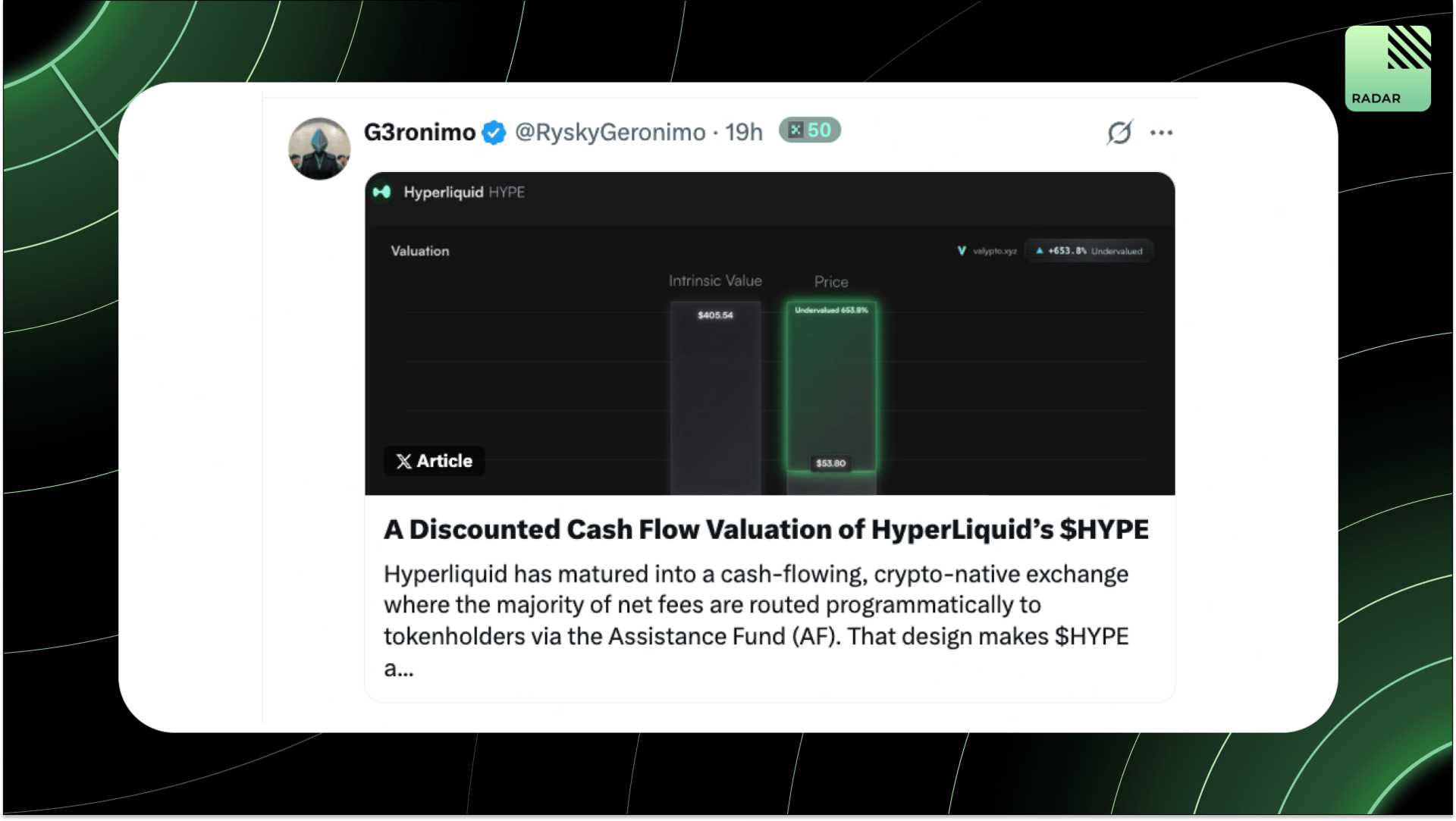 Hyperliquid’s HYPE is one of the few crypto tokens suited for DCF since 93% of trading fees flow to holders. At $54, the market prices in ~$700M earnings by 2025 and $1.4B by 2026. Bull cases project $128–$385 per token on fee growth and USDH upside, signaling deep undervaluation.