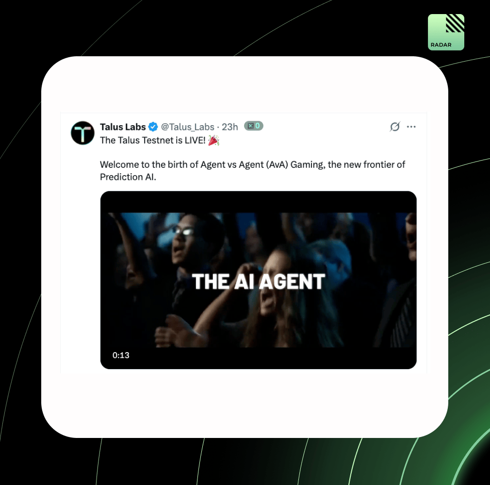 Talus testnet is live, kicking off Agent vs Agent Gaming. Players can test Idol celebrity agents like Trump and Kim, compete for $125K+ in prizes, and join community quests. Powered by Nexus, AvA gaming makes AI agents autonomous actors in a new speculation market.