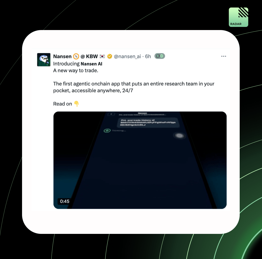 Nansen launches Nansen AI, an on-chain-first research agent built for traders and investors. Powered by 500M+ labeled addresses, it delivers real-time portfolio intelligence, Smart Money tracking, and alpha discovery.