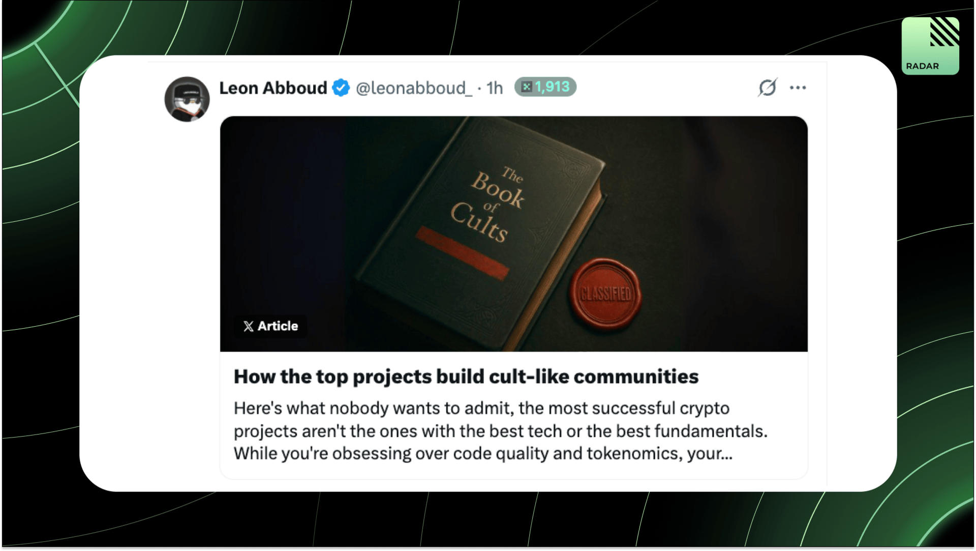 Top crypto projects don’t just ship tech, they engineer cult-like communities. Slogans, colors, and symbols build identity. Rituals and leaders sustain culture. Contrarian views attract loyalty. The winners launch tribes, not tokens, and tribes outlast markets.