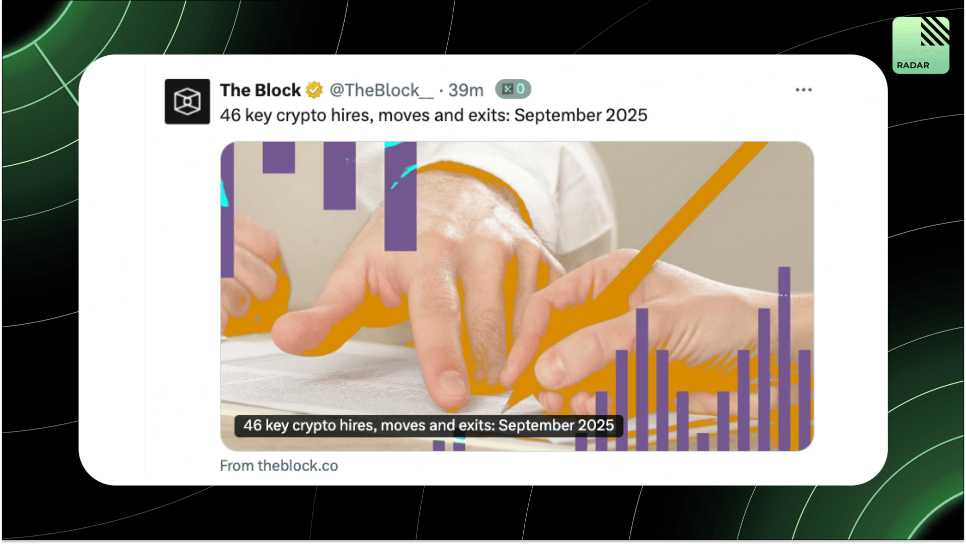September saw some major moves. Stablecoin infra, AI x crypto, and compliance hires are heating up. From Uniswap’s CLO exit to new execs at Coinbase, Circle, Pantera, and 0G, firms are gearing up for the next wave.