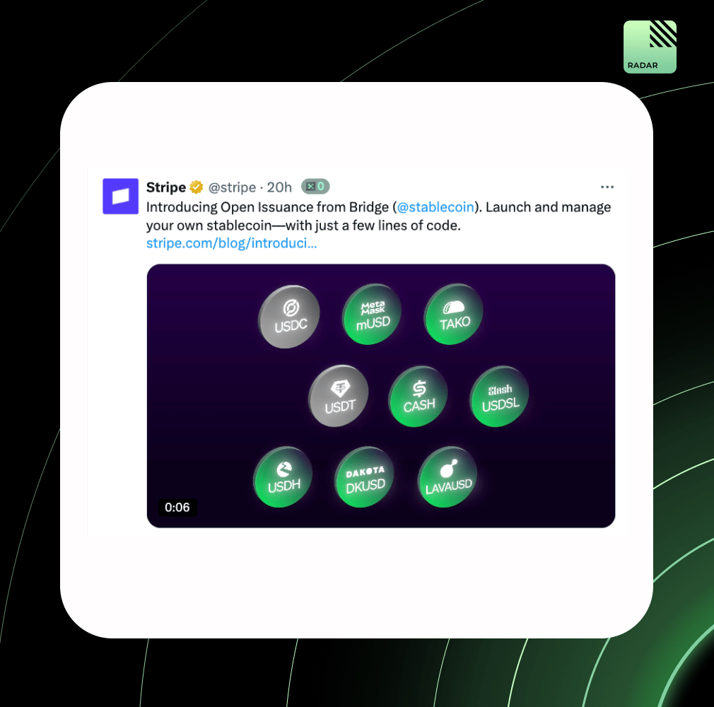 Bridge unveils Open Issuance, a platform for businesses to launch their own stablecoins without relying on dominant issuers. This gives companies full control over fees, reserves, and rewards, while plugging into a shared liquidity network. Phantom’s new stablecoin, CASH, is the first live deployment.