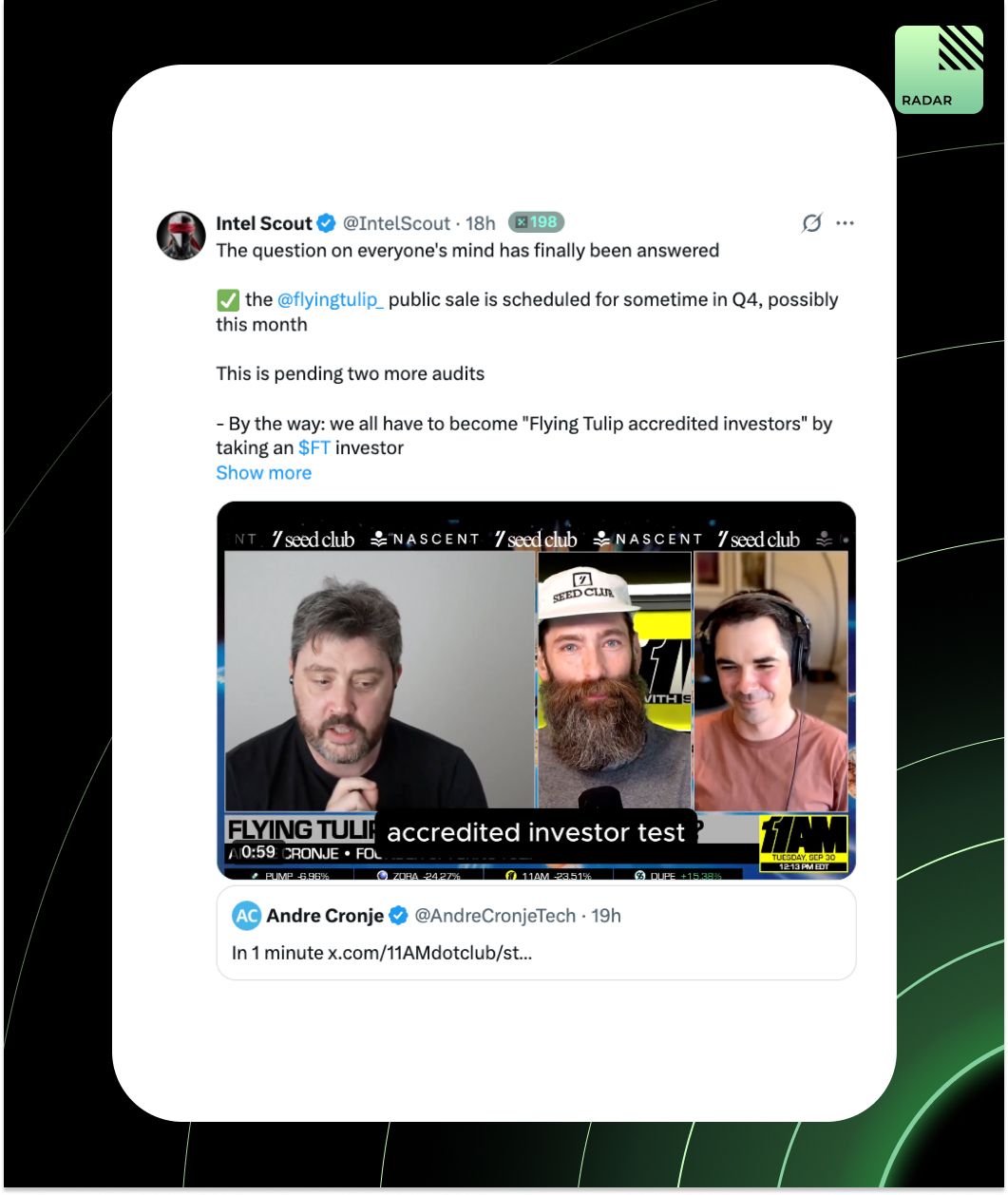 Flying Tulip’s public sale is set for Q4, potentially this month, pending two final audits. But there’s a twist: buyers must pass an FT investor test to qualify. This time, you’ll have to read before you ape.