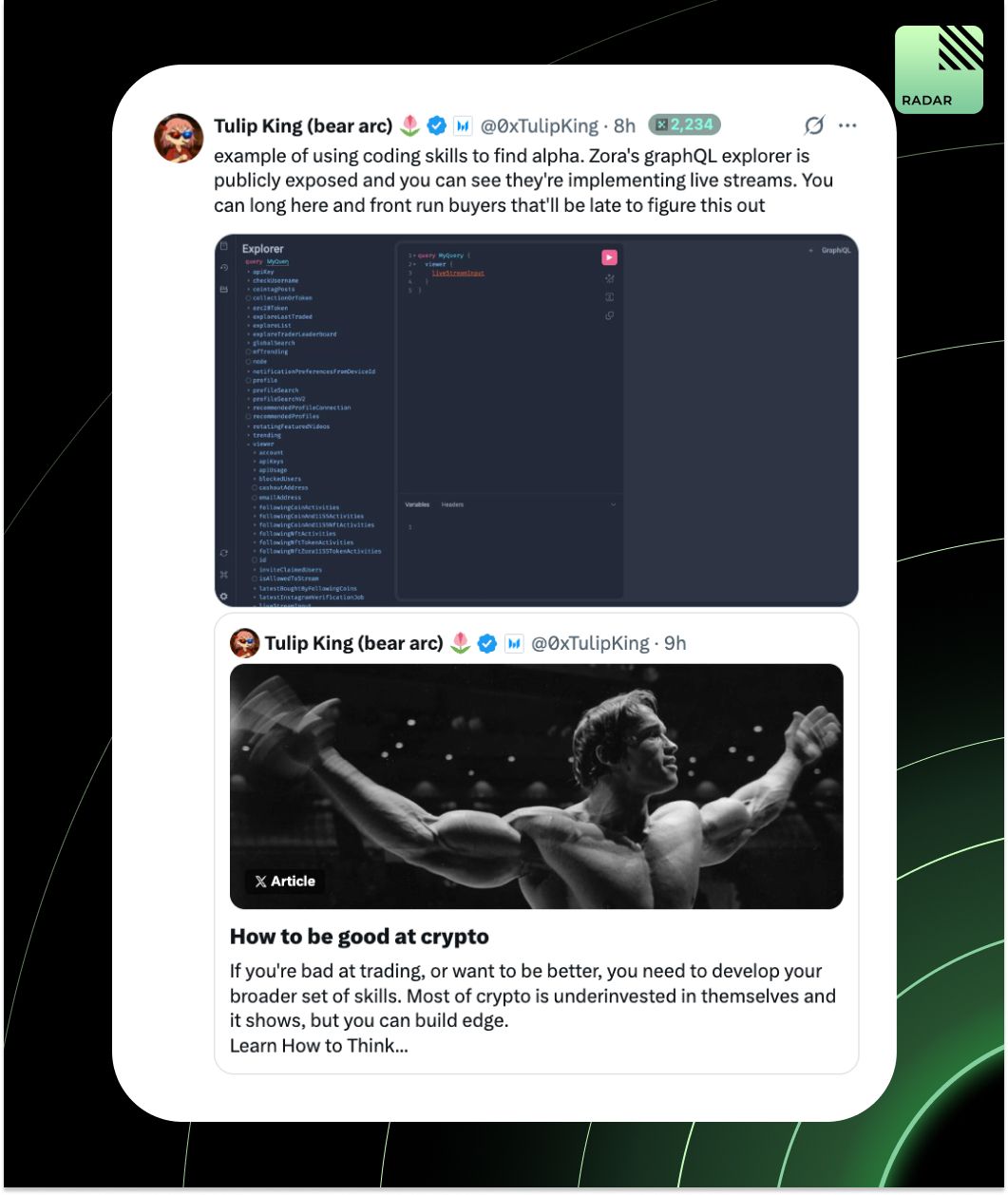 You’re not trading, you’re following, and the market punishes followers. Real alpha comes from independent thinking, not borrowed theses. That means reading deeply, writing clearly, understanding data, trading widely, and building social capital.