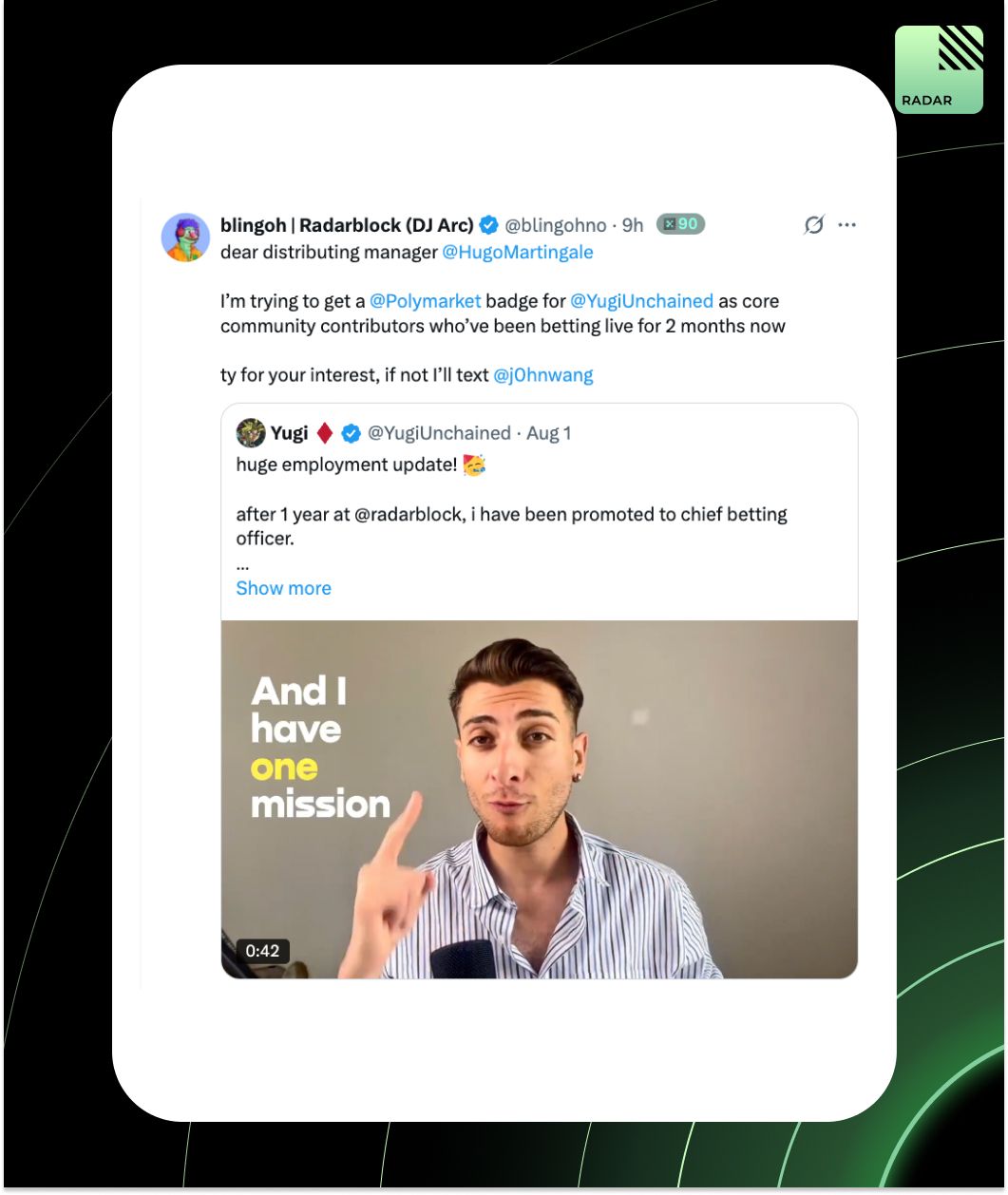 Our Chief Betting Officer has been running a daily Polymarket betting stream for over two months, weekly livestreams, and a strict “only bet YES” policy. That alone should earn him a Polymarket badge.
