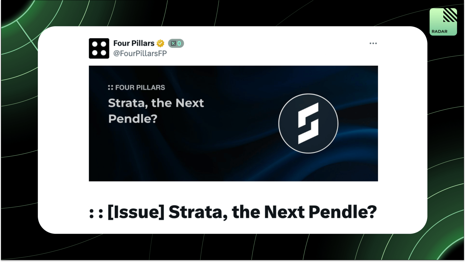 Strata tranches yield-bearing tokens into senior and junior slices based on interest rate volatility. Unlike Pendle, which splits principal and yield, Strata offers differentiated risk profiles, starting with USDe and aiming to expand to HLP, LLP, and more.