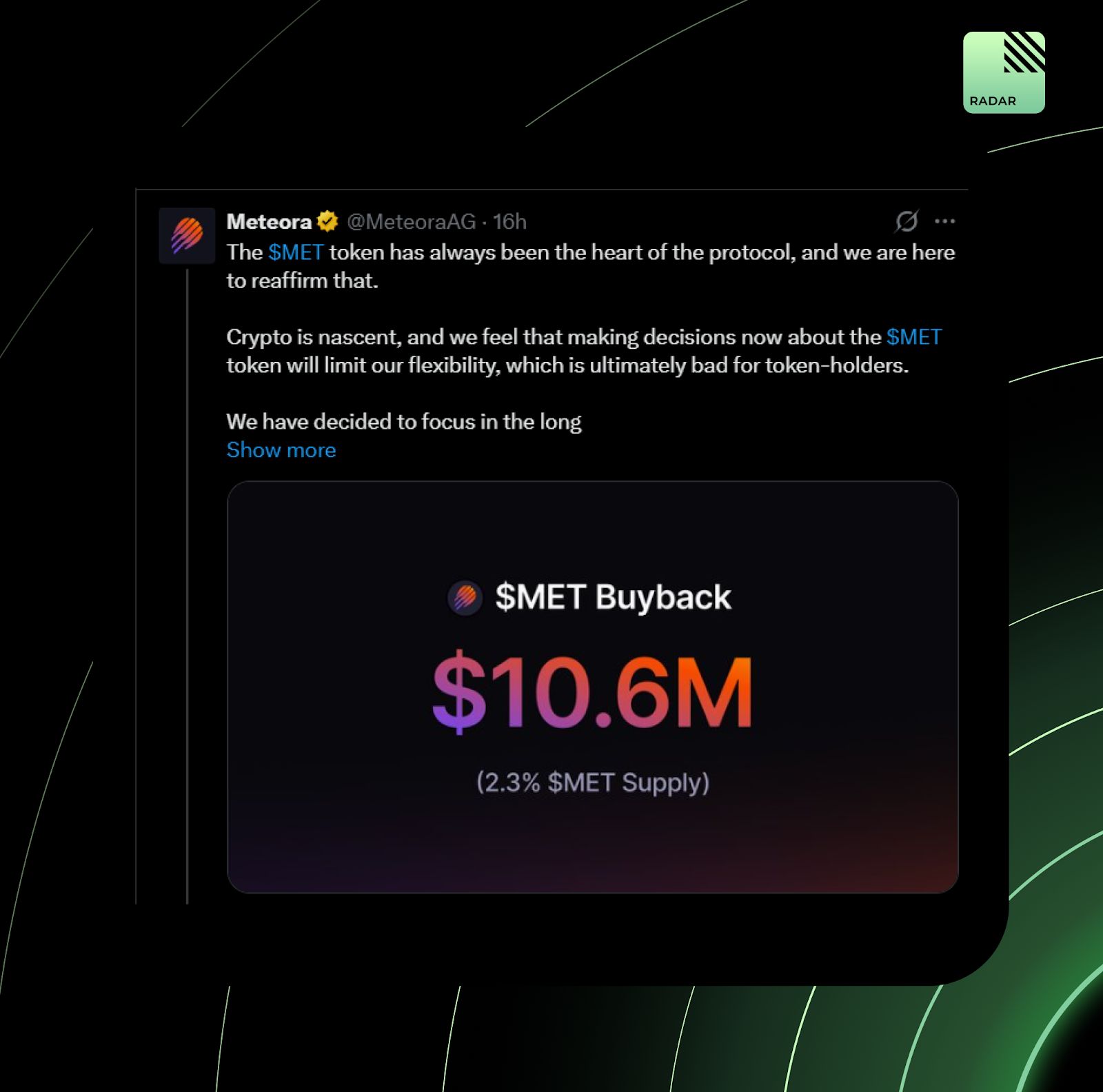 Meteora just bought back $10.6M worth of MET (2.3% of supply) and launched Comet Points. Stake, use the product, earn points, and spend them however you want. The team also hinted that more discretionary buybacks are coming. Someone’s clearly feeling bullish.