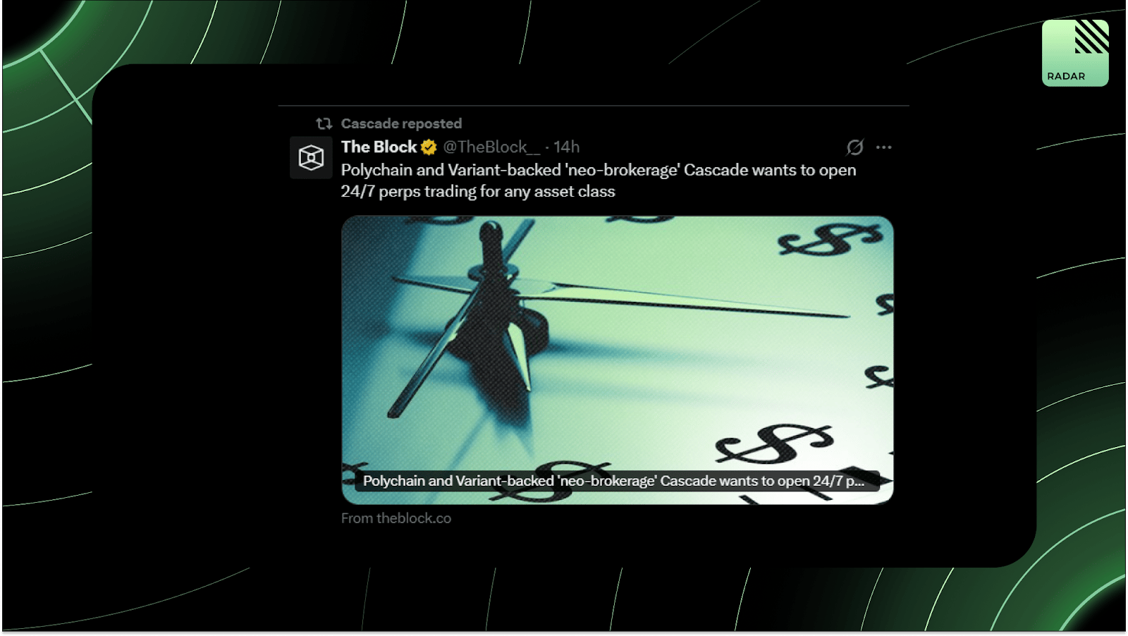 Cascade raised $15M to build a 24/7 “neo-brokerage” for everything, crypto, stocks, even private companies like OpenAI and SpaceX. It got Polychain, Variant, Coinbase Ventures, and Archetype all in on it. TradFi but unhinged.