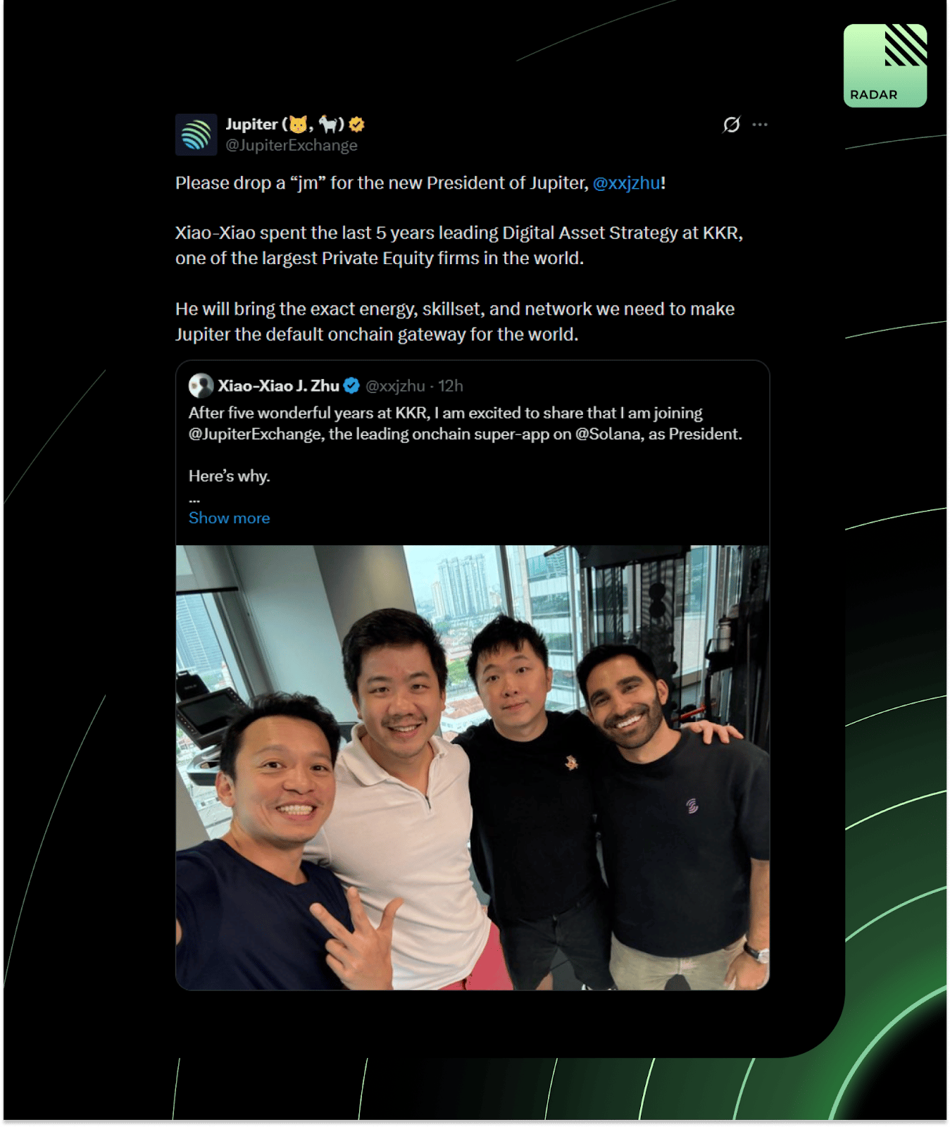 Jupiter made a huge hire: Kohlberg Kravis Roberts & Co’s Head of Digital Asset Strategy is now its President. $1T in annualized volume, $3B TVL, and now Wall Street talent joining the Solana super-app. Jupiter wants to become the on-chain gateway for the entire world, and they’re staffing up as they mean it.