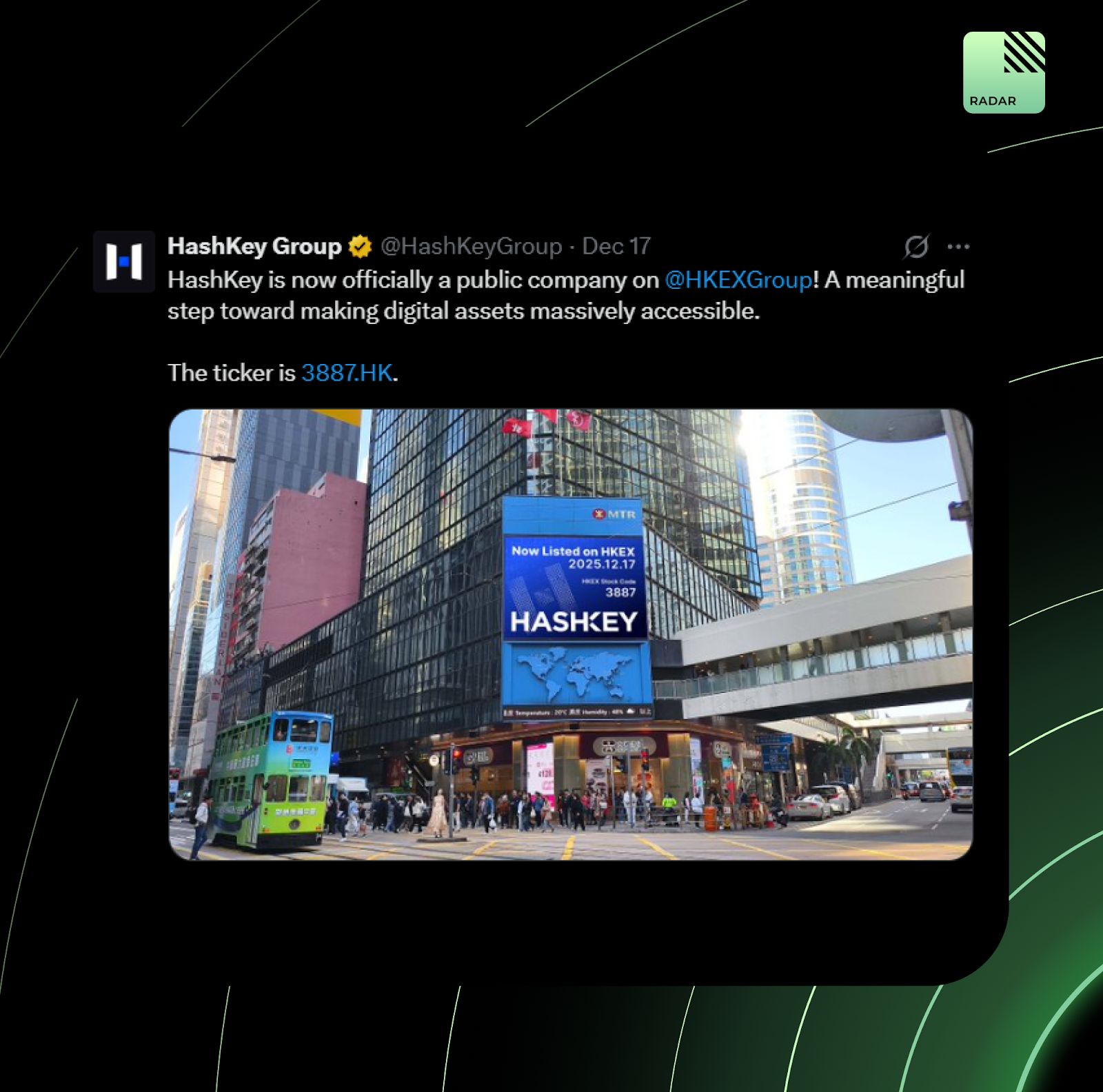 In a big market milestone, HashKey officially listed on the Hong Kong Stock Exchange. The IPO was massively oversubscribed, cementing HashKey’s position as a dominant regulated crypto player in Asia and reinforcing Hong Kong’s ambitions as a digital asset hub.