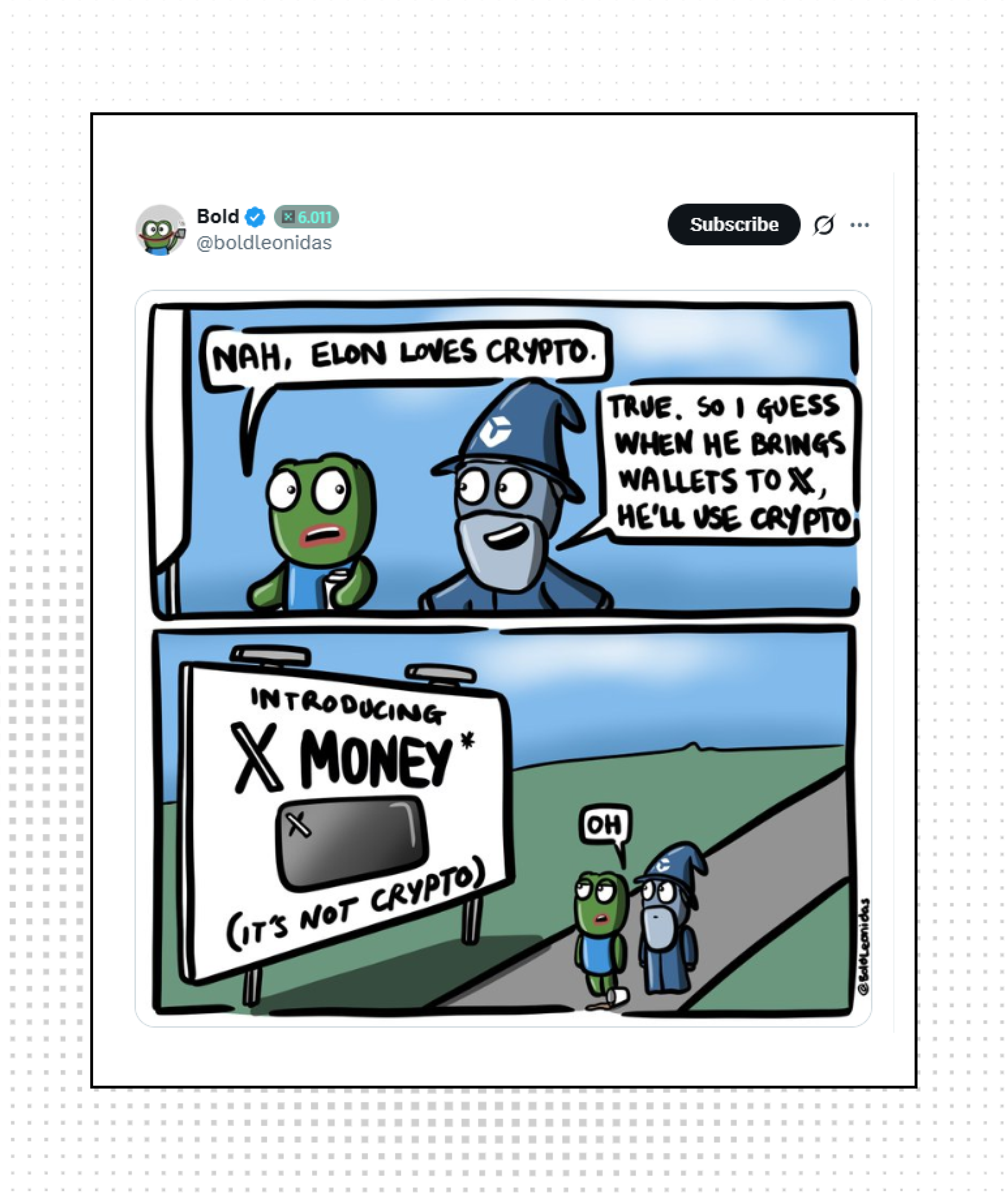 Maybe he'll at least add DOGE in there.