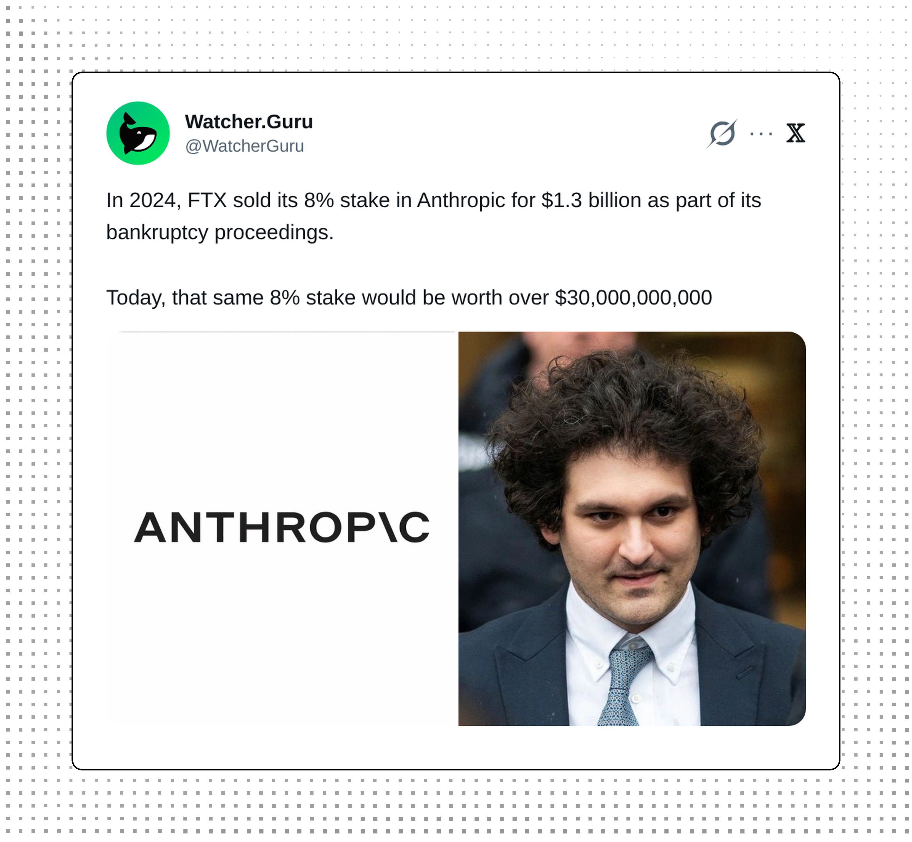 FTX sold its 8% stake in Anthropic for $1.3 billion during bankruptcy proceedings in 2024. Today, that same stake would be worth over $30 billion. A brutal reminder of forced liquidation timing.