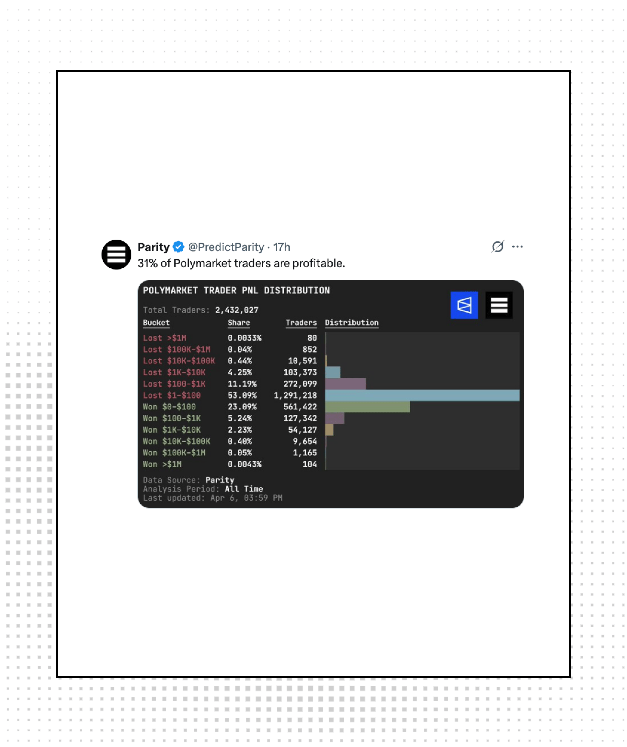 Only 31% of Polymarket traders are profitable, according to data from Parity. The prediction market boom brought volume, but most participants are still on the losing side.